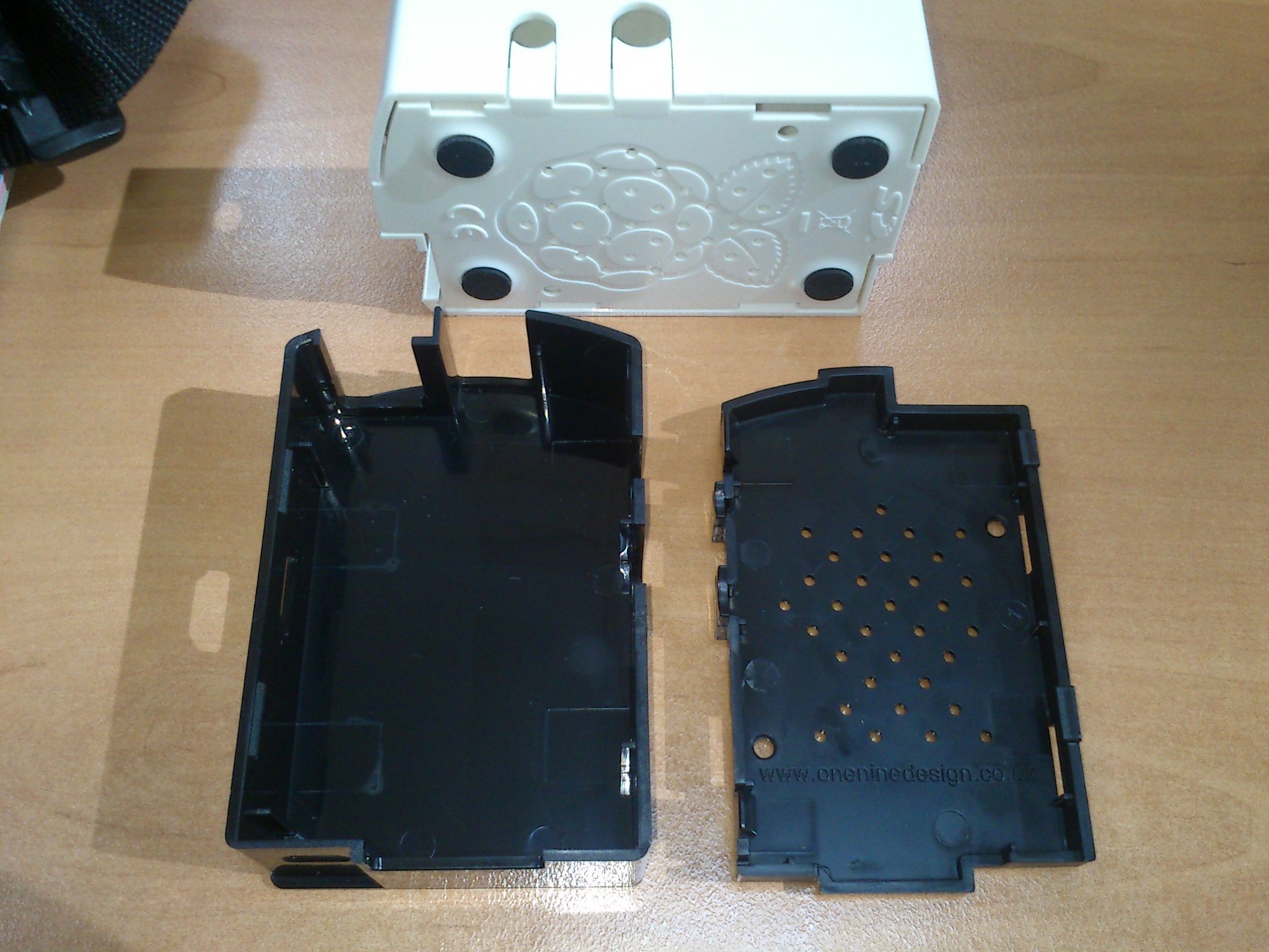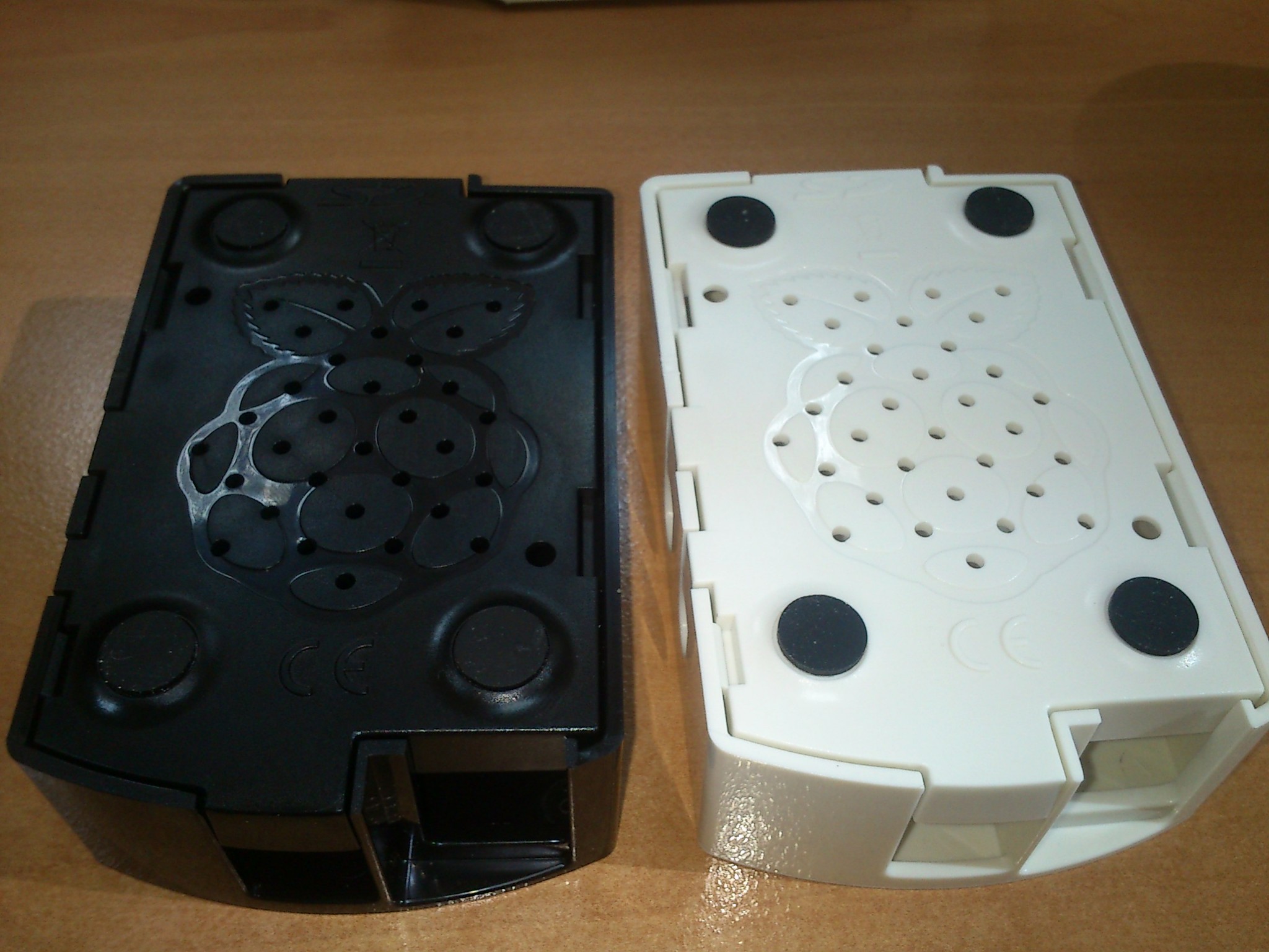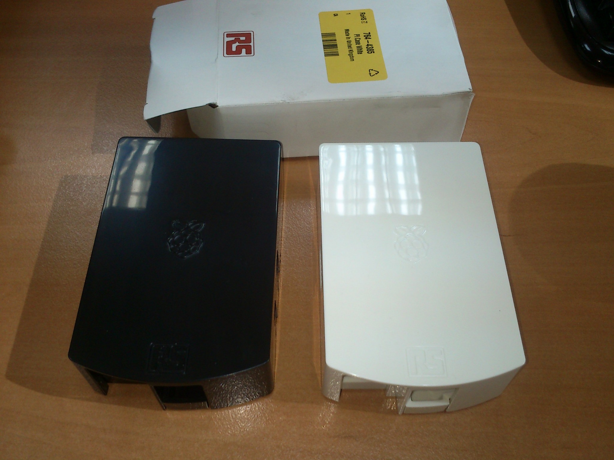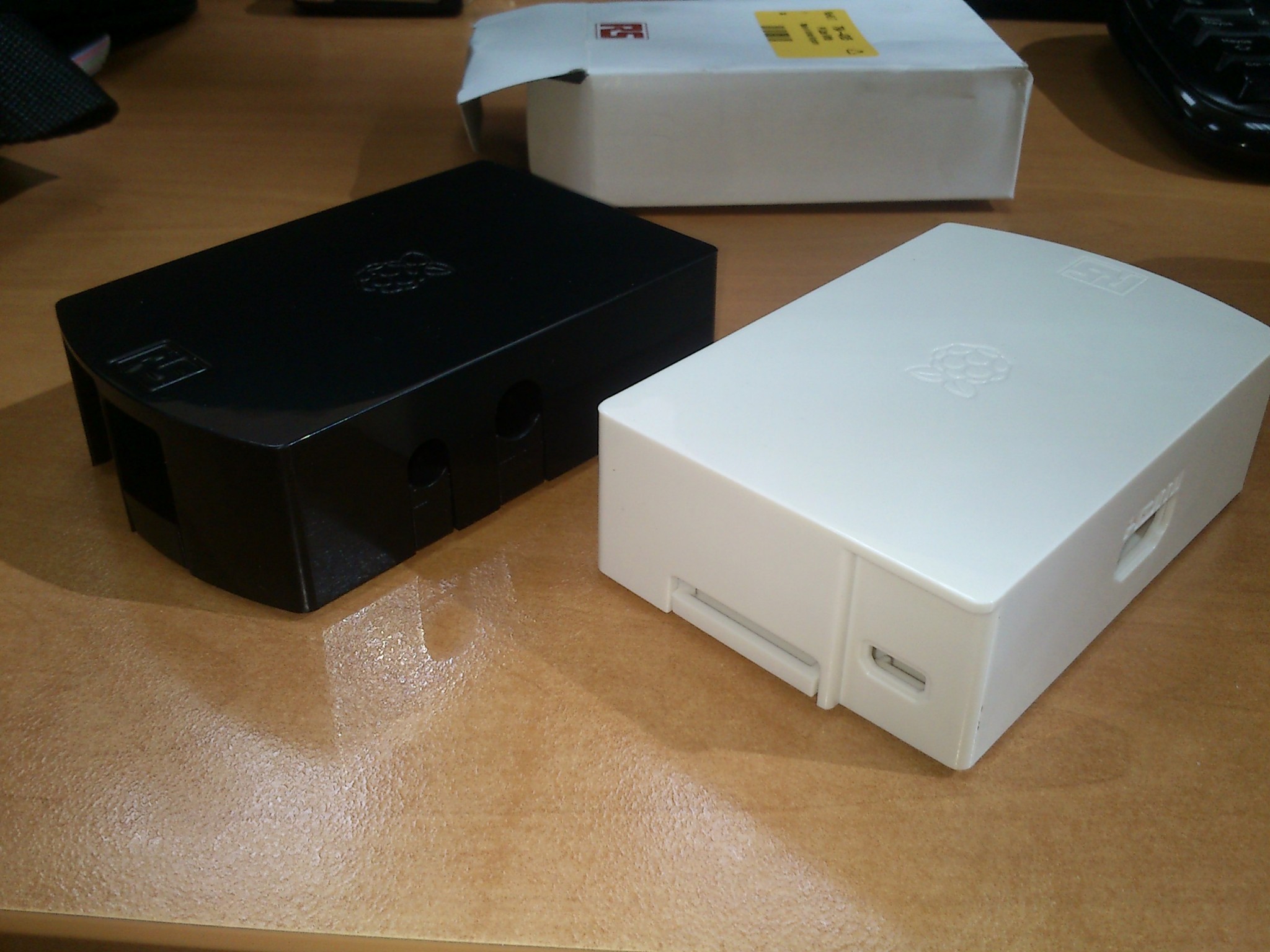 Otra galería con las cajas de RS, la blanca y la negra, para que comparéis con las cajas de element14. No tienen mucha ventilación y tampoco dejan ver los LEDS, aunque en la blanca se trasparentan un poco al ser más o menos translúcida. En la negra no se ve nada, lo cual es una ventaja para tenerla al lado del televisor.
