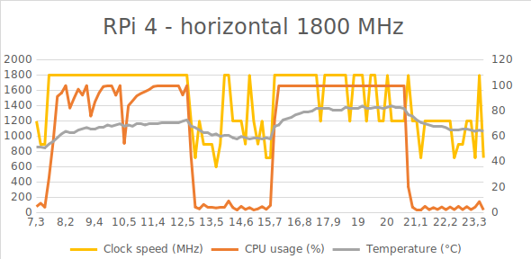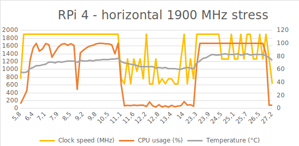 En mi caso probé la Raspberry Pi 4 a 1800MHz y a 1900MHz con una temperatura ambiente de unos 20ºC y sin ninguna caja, ni disipador ni ventilador. La placa siguió funcionando sin problemas, el firmware actuó cuando se superaba la temperatura y puede hacer todas las pruebas igual que a la velocidad de fábrica de 1500MHz.