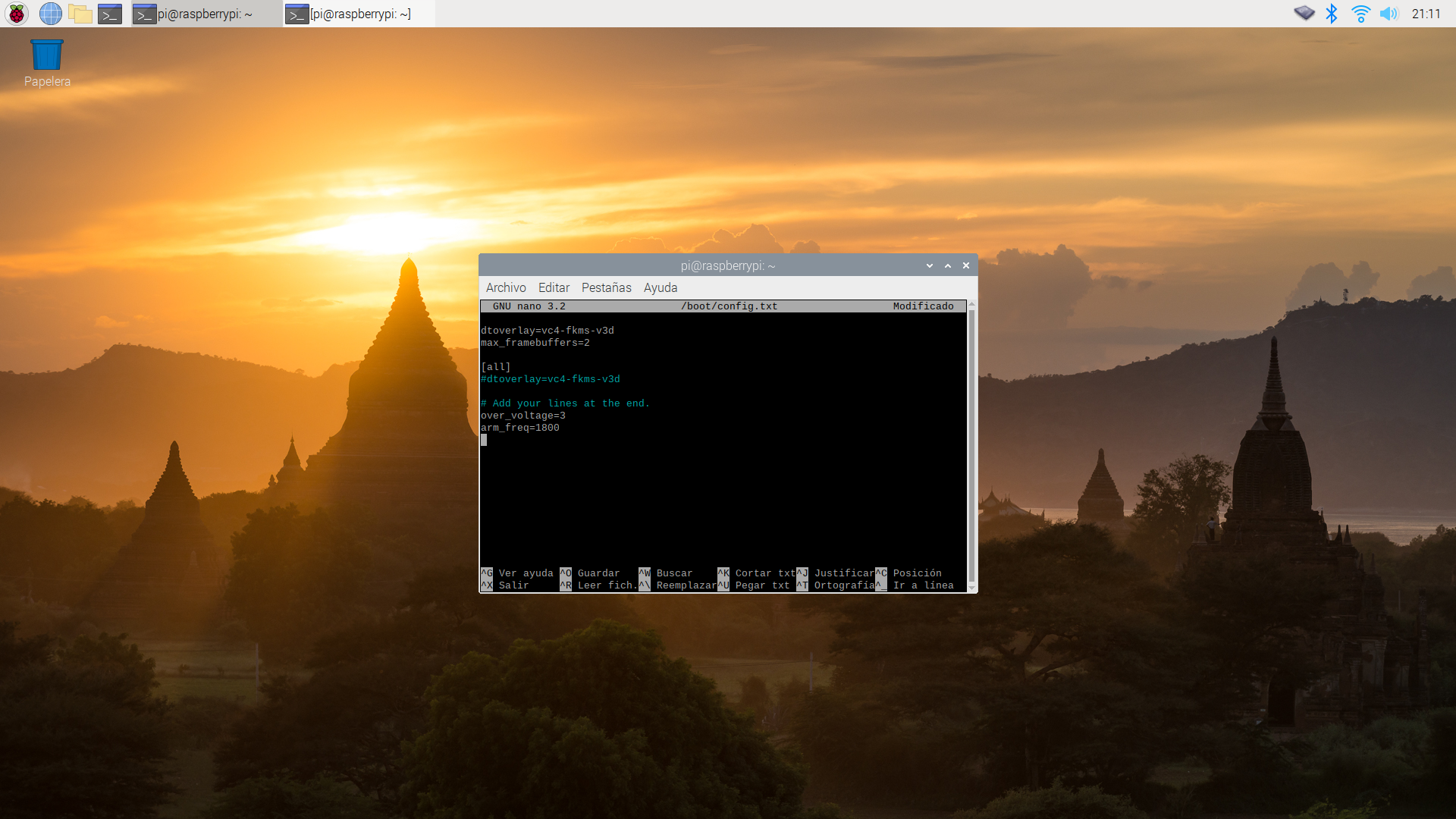 El cambio que hay que hacer es editar como root el archivo /boot/config.txt que lo podéis hacer con el siguiente comando desde la Terminal: