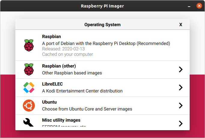 Galería de opciones de Raspberry Pi Imager: