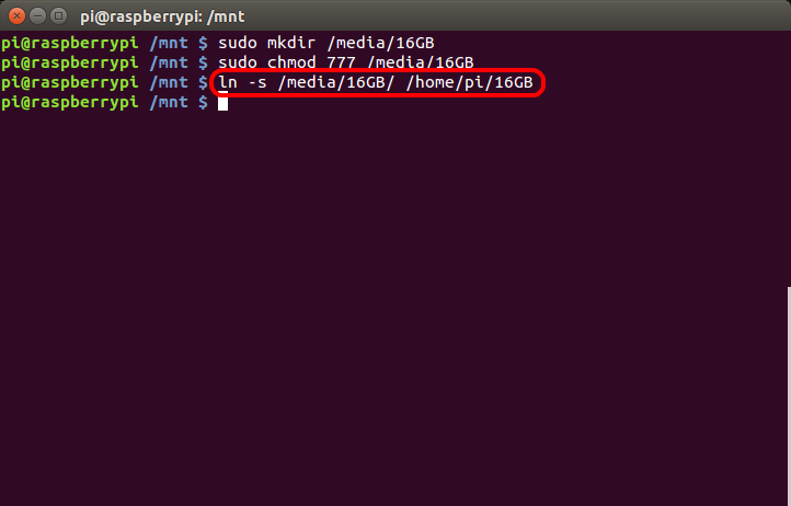 ln -s /media/16GB/ /home/pi/16GB