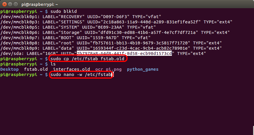 sudo nano -w /etc/fstab