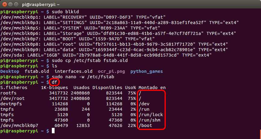 sudo blkid /dev/sda1 >> /etc/fstabasí queda copiado el UUID y solo quedará luego editarlo correctamente.