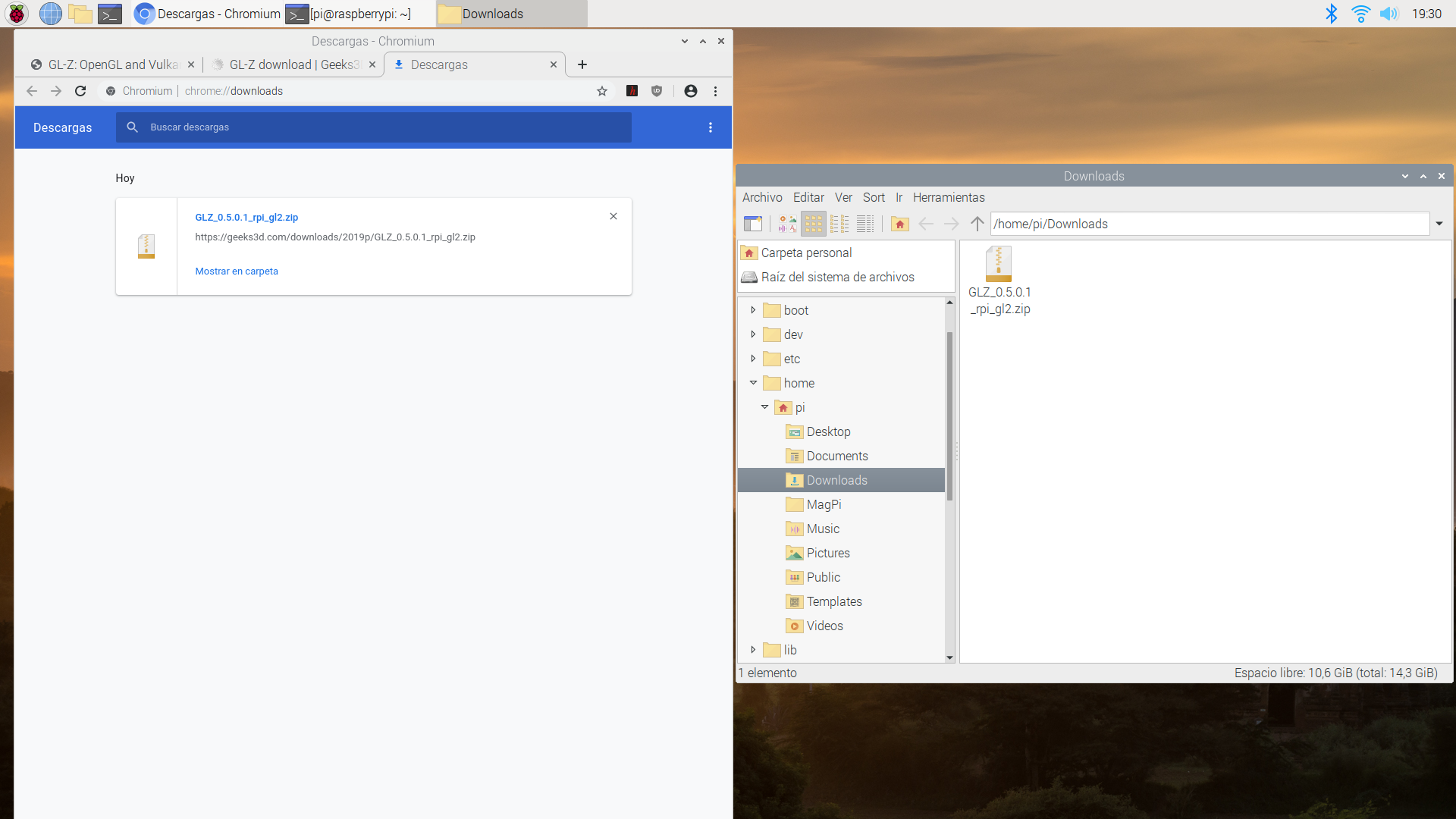 Si usáis Chromium, que es el navegador por defecto de Raspbian, lo normal es que el archivo quede en la carpeta Downloads del usuario Pi. Y ya desde ahí con el botón derecho del ratón podemos extraer el contenido del archivo .zip