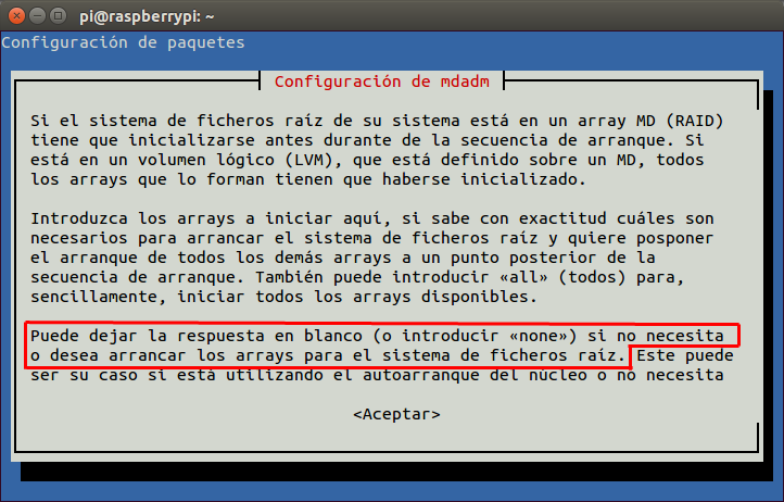 Al instalarse nos preguntará dos cosas muy importantes, en el caso de la Raspberry Pi aún más: