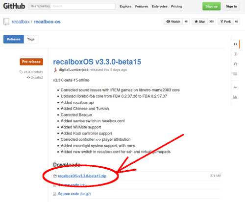 La instalación es al estilo NOOBS con la SD en un PC normal copias, nada de flashear ni de usar imágenes, copias los archivos del ZIP en la microSD. Los puedes descargar desde la web de Recalbox: recalbox.com y allí concretamente vamos a Releases · recalbox/recalbox-os · GitHub y al hacer click sobre la última versión disponible ya nos aparecen las opciones de descarga: en concreto será la primera con extensión ZIP