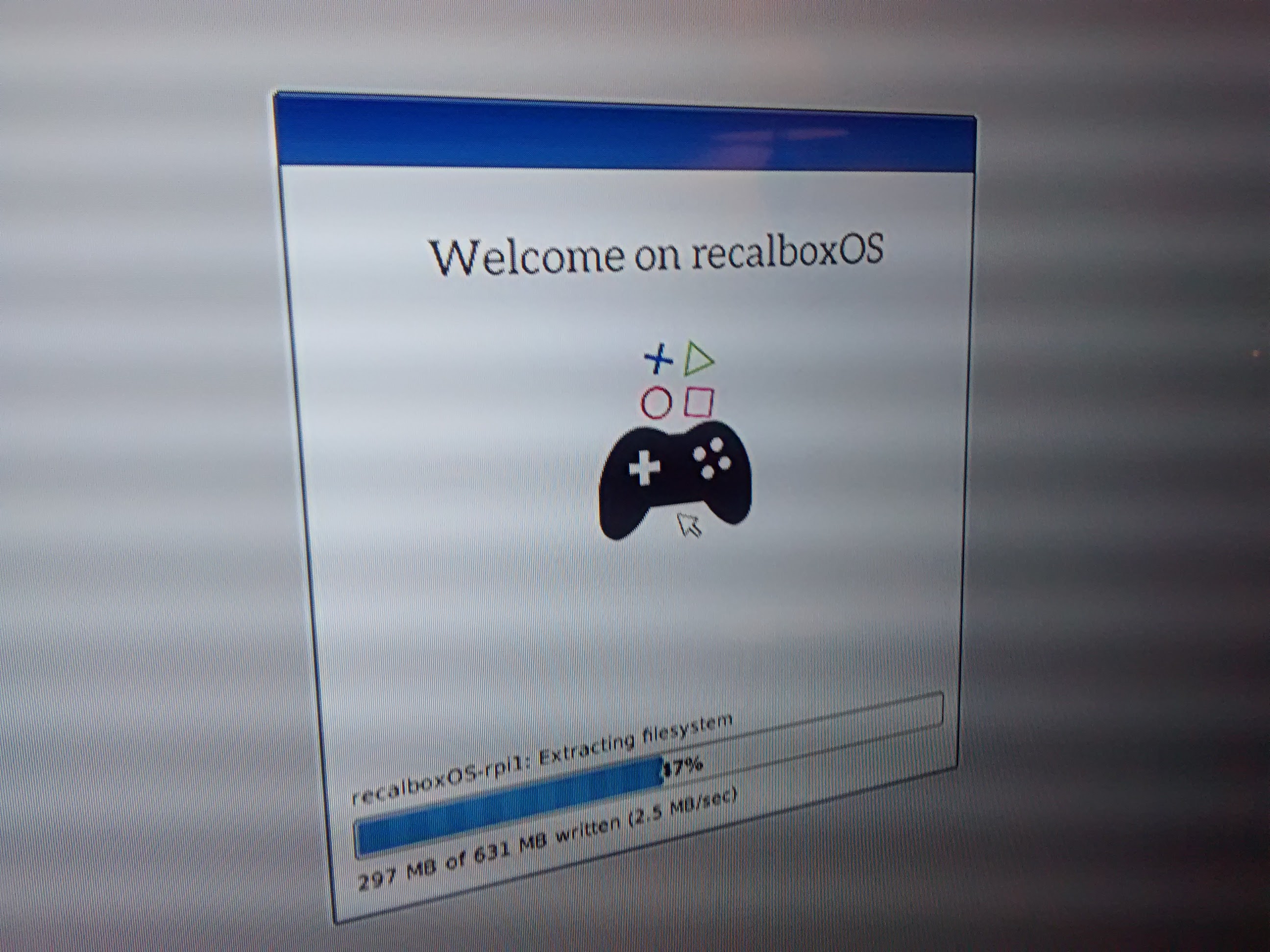 OJO no es necesario usar ningún programa para guardar el ZIP como imagen al estilo Raspbian, solo hay que descomprimir el contenido del ZIP en la microSD formateada normalmente con Windows. Al iniciar Recalbox por primera vez se reformatea y particiona todo automáticamente.