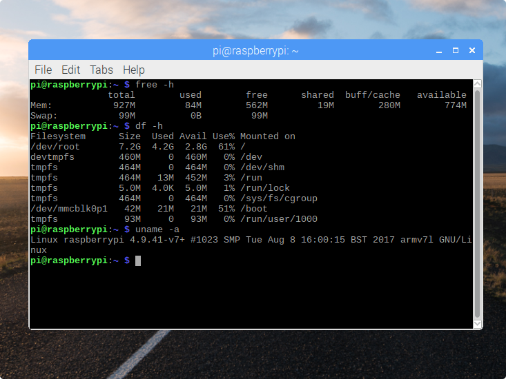 La instalé en una Raspberry Pi 3 B+ de 1GB de RAM y tenemos: