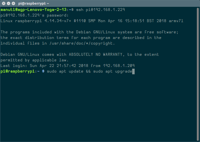 Así que por seguridad lo primero es cambiar la contraseña con el comando: sudo passwd pi