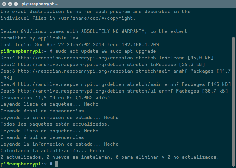 Antes de seguir hacemos una actualización del sistema con los comandos: sudo apt update && sudo apt upgrade