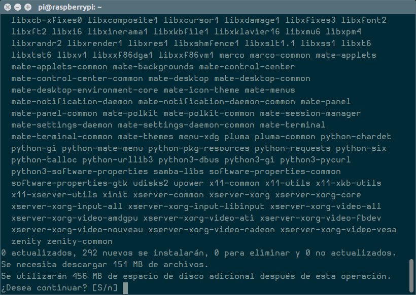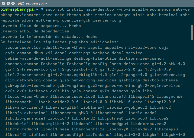 Y cuando vuelva a arrancar el sistema, ejecutamos el siguiente comando para instalar un escritorio mínimo de Mate: