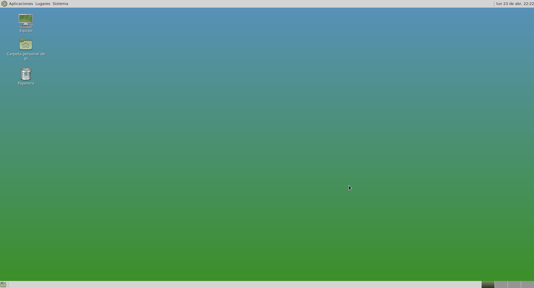 Si todo salió bien, tu nuevo escritorio mínimo de Mate debería estar funcionando. Pero no arranca por defecto. Si no que arranca una Terminal y una vez ponemos el usuario (pi) y contraseña (raspberry). Tecleamos el comando startx y luego Enter y ya debería arrancar el escritorio Mate