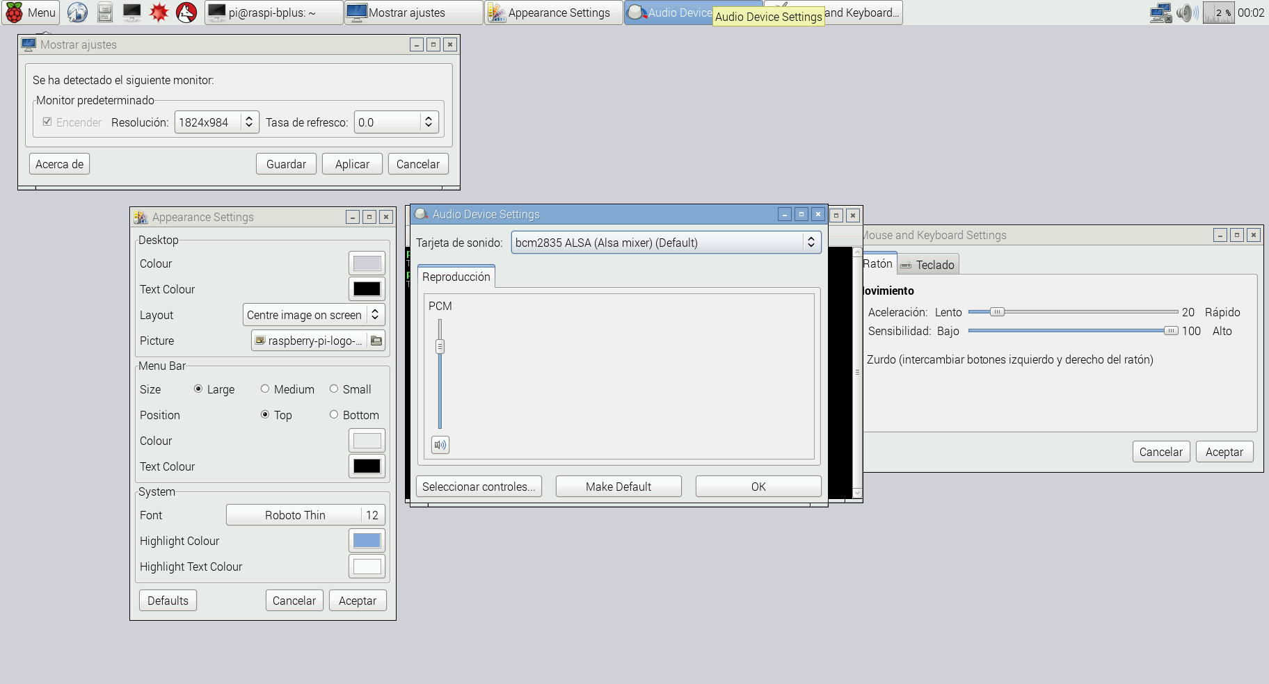 Además estos indicadores llevan asociados un conjunto nuevo de herramientas para configurar nuestra Raspberry Pi. Aquí podéis verlas todas abiertas.